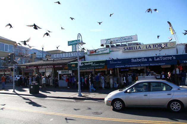 Fisherman’s Wharf, SF’te sanirim en cok sevdigim noktaydi. Oncelikle deniz mahsulu restaurantlarindan baslamalisiniz. Her restaurant’in onunde bufesi de var. Eger iceride oturarak yerseniz $30’a yiyeceginiz tabagi, disarida fast food olarak aldiginizda $9’a yiyebilirsiniz. Yiyemeyeceginiz kadar Istakoz, ahtapot, balik vs $9-13 civarinda ve gercekten lezzetliler. On tarafinda sokak sanatcilarinin muzigi eslinde cok keyifli vakit gecirdik. Biraz ilerisinde ise Pier 39 adindaki iskeleye mutlaka yuruyun. Iskele dedigime bakmayin, icerisinde alisveris icin buyuk dukkanlarin bulundugu bolumun ortasinda buyuk bir atli karinca bile var. Hard Rock Cafe’de hemen yaninda konuslanmis.
