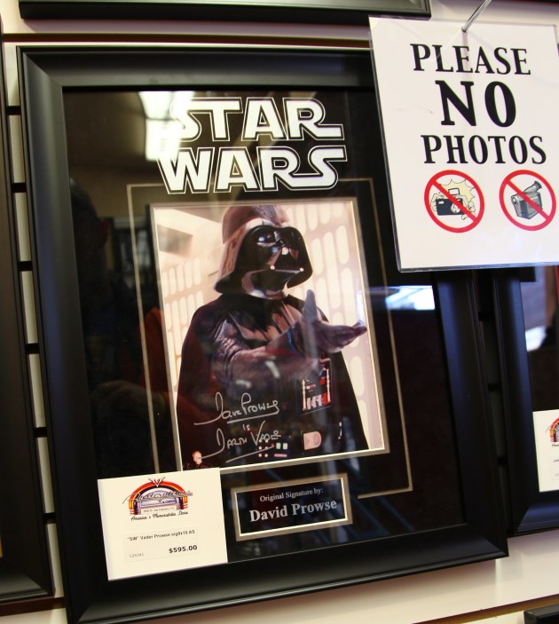 Magazalardan en cok dikkatimi ceken ise, unlulerin imzali poster, forma, fotograflarinin satildigi magazaydi. Dunya’nin her yerine urunleri kargolama gibi bir hizmetleri de var. Telefon veya mail ile iletisime gecip bu hizmetten faydalanabilirsiniz. Yalniz unutmamanizda fayda var, genel olarak sattiklari urunler $600’dan baslayip binlerce dolari buluyor. Star Wars hayranlari icinse imzali posterleri kacirmak istemeyecektir.