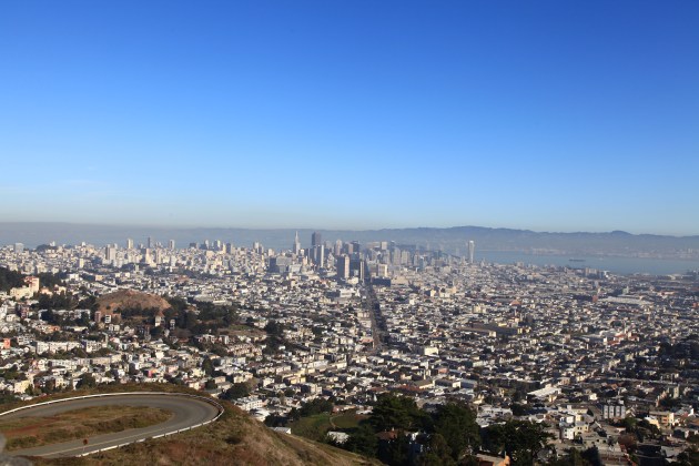Twin Peaks, SF’in en yuksek ikinci noktasi ama sehrin jeografik merkezi sayilabilen bir yerde. Buraya ulasincaya kadar sehre asik olabilmenize fazlasiyla yetecek guzel sokaklardan ve harika evlerin yanindan geciyorsunuz. Yukaridaki manzara ise insani ayri bir buyuluyor. Sadece seyir tepesinden ve sehrin vericilerinden olusuyor.