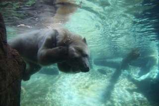 Kutup Ayisi. Sicaktan bunalir, yuzmeyi sever. Havuc favori atistirmaliklarindan. Insanla ic ice (yada beni kendisine yakin gordu..)